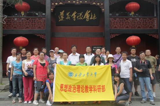 为庆祝中国共产党成立90周年,切实贯彻落实科学发展观,深入推进创优争先活动,引导思政部全体教师学习优秀共产党员的先进事迹和模范言行,继承发扬党的优良传统,进一步提高部门全体教师的思想政治素养和职业道德素质,为思想政治理论课教育教学提供现实的经验和事例,提高思想政治理论课教学的实效性,2011年7月11日至7月16日,思政部直属党支部组织部门全体教师赴贵州遵义会议遗址纪念馆开展暑期“红色之旅”考察活动。成人游戏