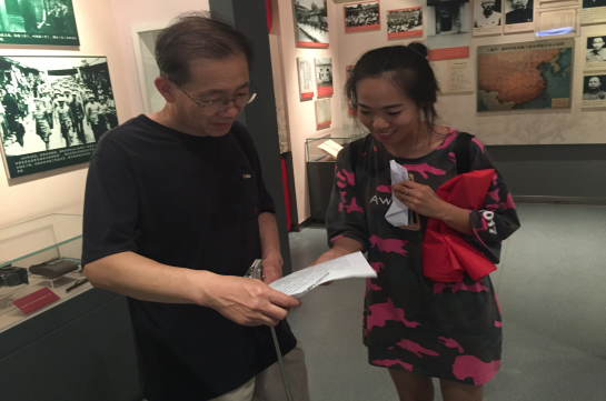 之后我们分组调查并访谈了一些游客,征求他们对我们此次活动的意见与感受后,我们几个人在八路军纪念馆里面的会议室里探讨。我们在会议室里举办了一次小型的讲座,邀请游客在会议室里倾听一下我们宣讲的八路军的革命史和红军一些不为人知的知识。小小的会议室里渐渐的聚集了许多游客来听我们的演讲。