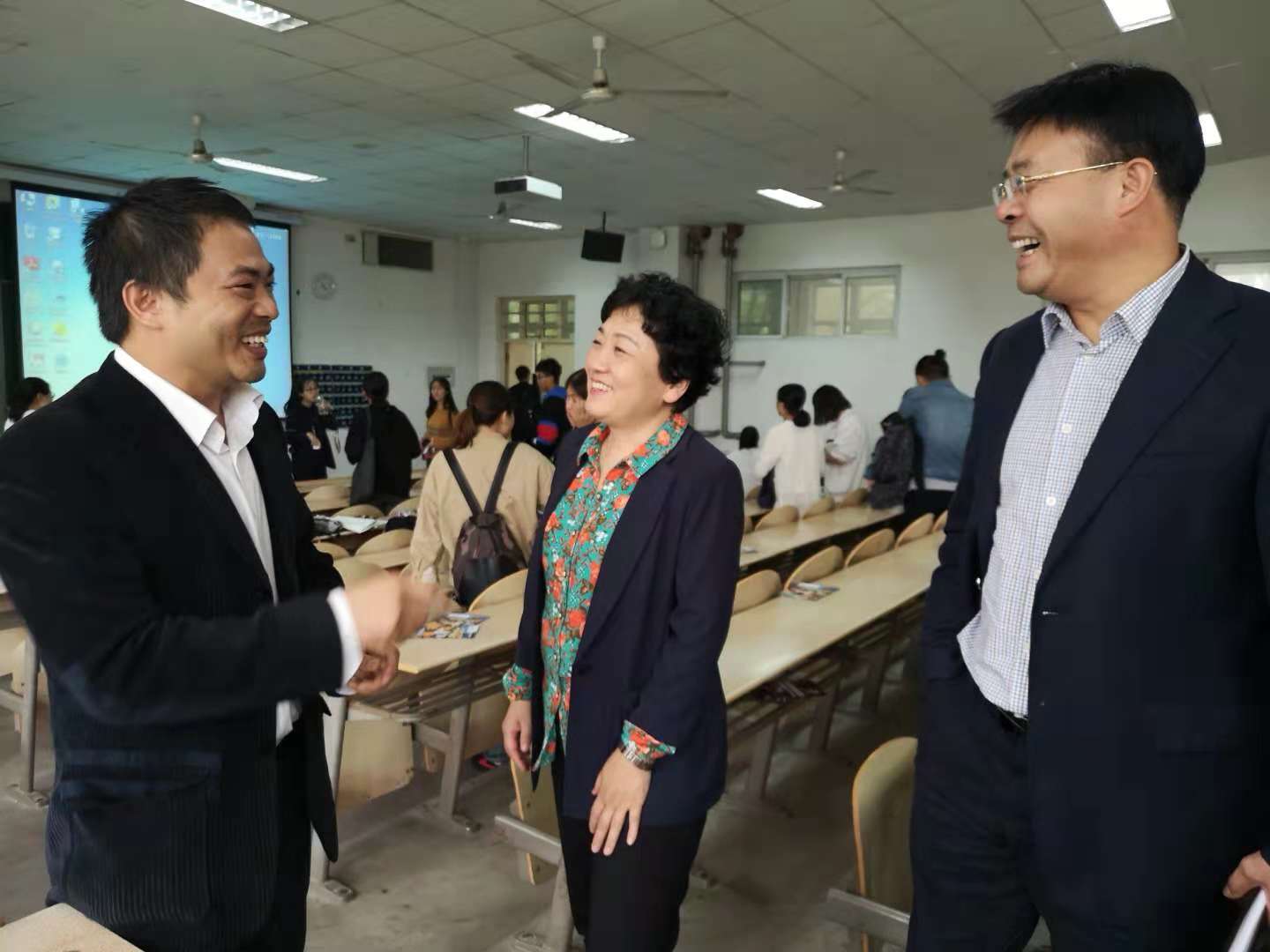 2018年10月8日下午,省委高教工委副书记陈乃霞、省委高教工委组织部副部长王亚新莅临我校检查指导工作,并深入思想政治理论课课堂听课。