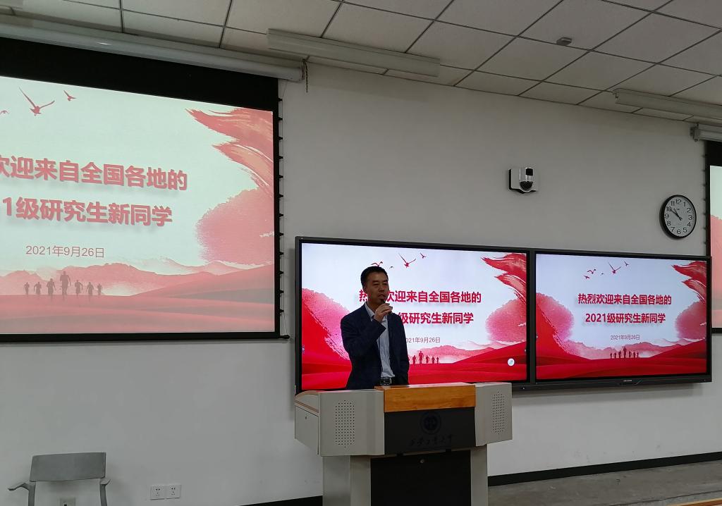 在未央校区教2-101召开了2021级研究生迎新暨师生见面会,学院院长李晓彤、院党委书记杨灏、副院长梁华平、院长助理孟文科、各教研部主任、研究生导师以及2021级全体研究生参加了会议,会议由副院长梁华平主持。