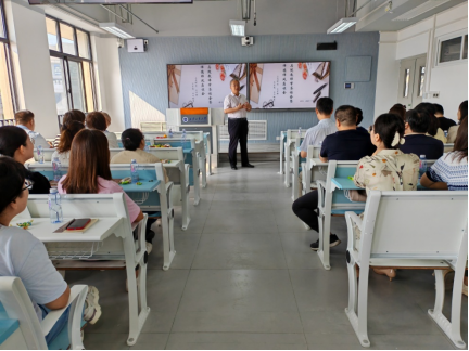 师德标兵代表赵东与老师们分享自己从教22年的心得,谈及自己在老教师身上学到的敬业精神和教学经验。他还总结了自己的教学理念,即教材体系向教学体系转变,教学体系向信仰体系转变(“两个转变”);知识传授、能力培养、价值引领相统一(“三个统一”);做学生锤炼品格的引路人,做学生学习知识的引路人,做学生创新思维的引路人,做学生奉献祖国的引路人(“四个引路人”)。