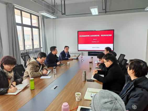 座谈会前,杨向卫向学院赠予个人著作《我国军工企业核心价值观研究》,并以“陕甘根据地军事工业的发展历程、特征和历史贡献”为题分享了自己的学术观点。他从陕甘根据地军事工业的发展历程、陕甘根据地军事工业的基本特征、陕甘根据地军事工业的历史贡献等方面进行了解读,并提出深化研究的思考。