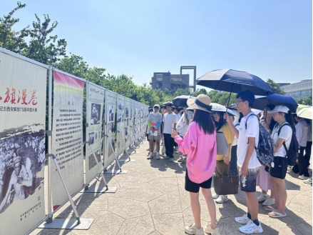 联合举办的“红旗漫卷——纪念西安解放75周年图片展”在未央校区布展。学院组织学生进行了现场教学。