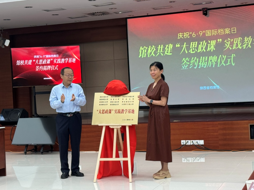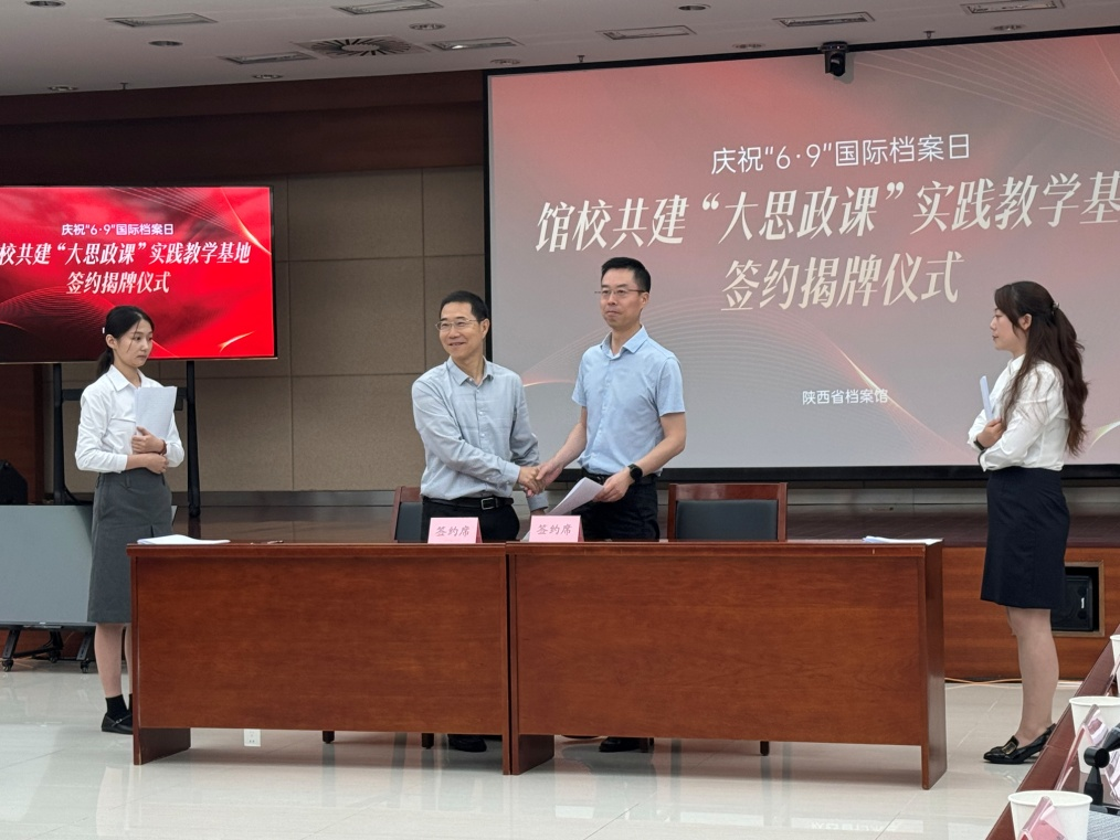 院长梁华平、副院长孟文科参加了签约揭牌仪式。梁华平与省档案馆一级巡视员王康生共同签署了我校与陕西省档案馆“馆校共建‘大思政课’”实践教学基地共建协议。下一步,学院将积极落实共建协议,通过教学实践、联合研究、业务互助、师资建设、志愿服务、案例分享、主题活动等工作,打造学生思想政治教育的良好实践环境,进一步推动我校思政课建设内涵式发展。