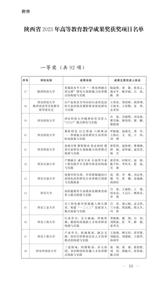 近日,陕西省2023年高等教育教学成果奖获奖项目公布,成人游戏