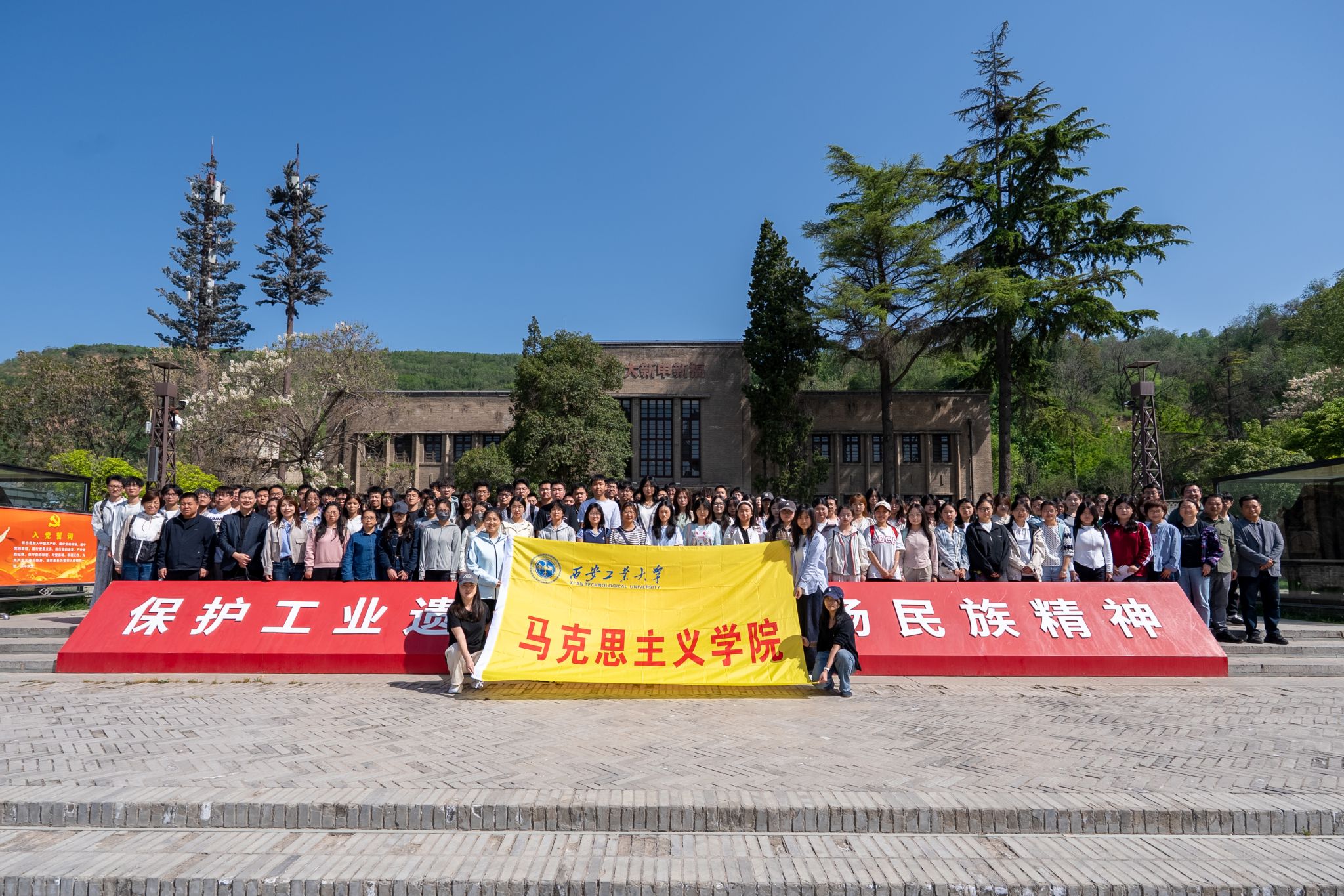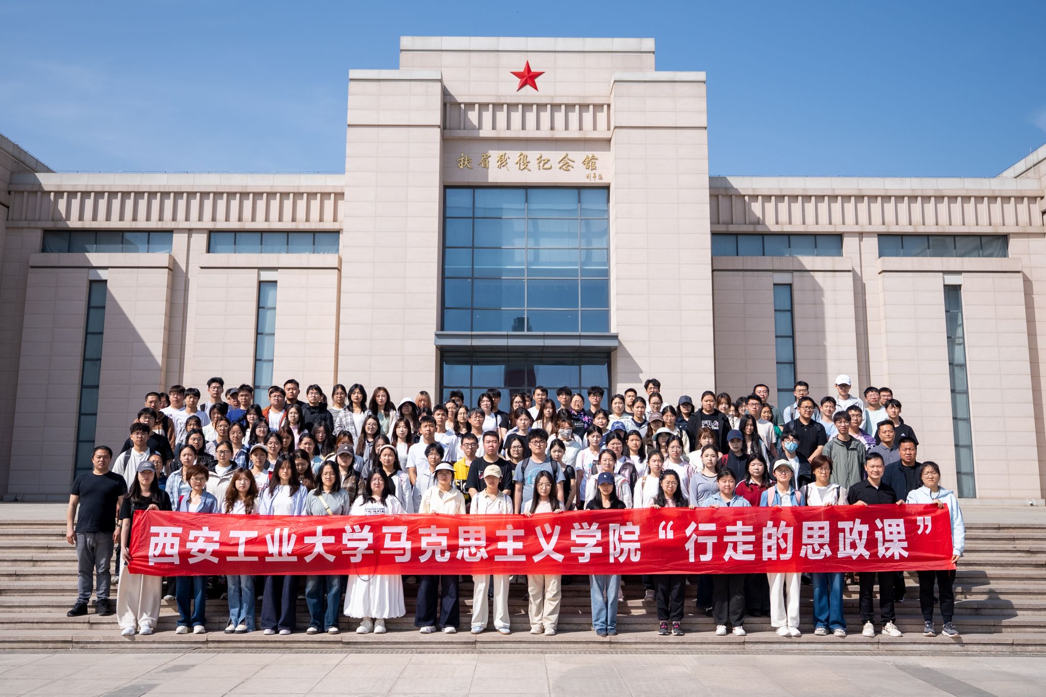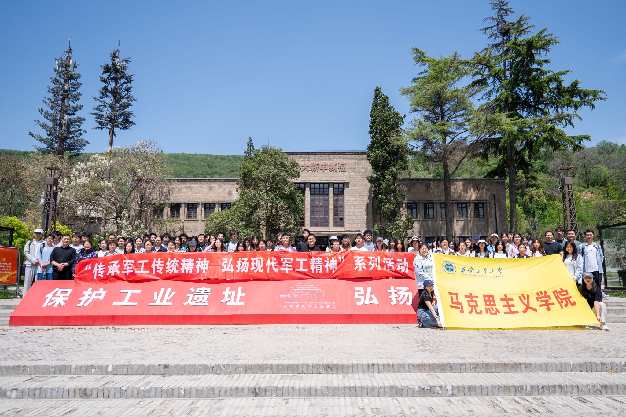为将“思政小课堂”与“社会大课堂”深度融入大思政课综合育人全过程,实现把思政课讲深、讲透、讲活,近日,学院组织了“纲要”和“概论”课程的200余名学生赴宝鸡长乐塬抗战工业遗址、扶眉战役纪念馆开展实践研学活动,并与两地达成了共建思想政治理论课实践教学基地的共识。