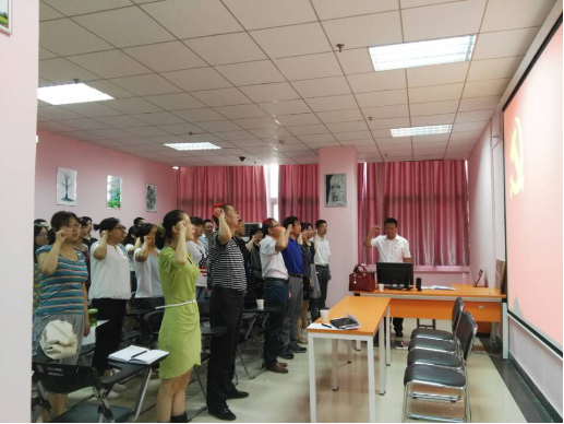 2016年7月1日,思政部教工党支部全体党员在图书馆309会议室,面对党旗,举起右拳,再次郑重宣誓:“我志愿加入中国共产党,拥护党的纲领,遵守党的章程,履行党员义务,执行党的决定,严守党的纪律,保守党的秘密,对党忠诚,积极工作,为共产主义奋斗终身,随时准备为党和人民牺牲一切,永不叛党。”这次重温入党誓词活动,是思政部教工党支部开展纪念建党95周年庆的系列活动之一,也是结合“两学一做”学习教育部署,开展的一次“重温入党誓词”主题党日活动,组织党员重温入党誓词,对照入党志愿谈理想、谈信念,对照入党誓词找标准、找差距,以当初入党时的真诚和激情坚定理想信念,增进对党的感情。旨在与时俱进,在于恪守承诺,在于笃行,目的就是要使思政部全体党员牢记誓词,发挥党员的先锋模范带头作用,积极投身教学、科研和为学校改革发展服务之中。