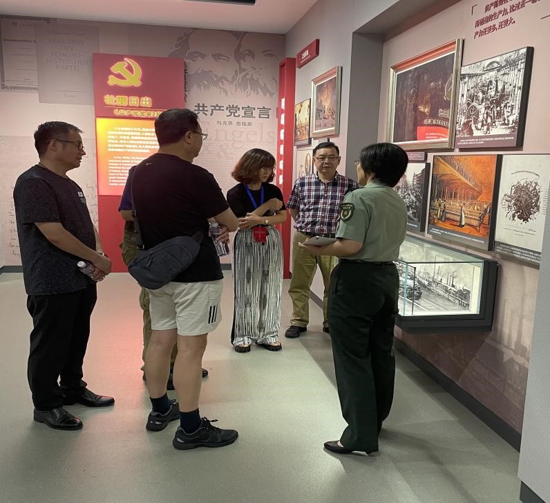 硕士研究生谢晨晨与杜昀参加由国防大学政治学院、上海军事政治学协会举办的军事政治学专家论坛会议,翌日参观了国防大学政治学院新近落成的《共产党宣言》情景教学馆。该教学馆为全国唯一一所《共产党宣言》教学馆,它立足明理与铸魂结合、历史与现实统一、教学与研究并进和军地融合共享的理念,设有“革命导师”“壮丽日出”“红色经典”等七个展区。两位同学通过此次暑期实践,不仅身临其境地学习了《共产党宣言》,而且重温了中国共产党百年奋斗史,深刻理解了党的初心和使命,从而更加坚定了自己的共产主义信仰。