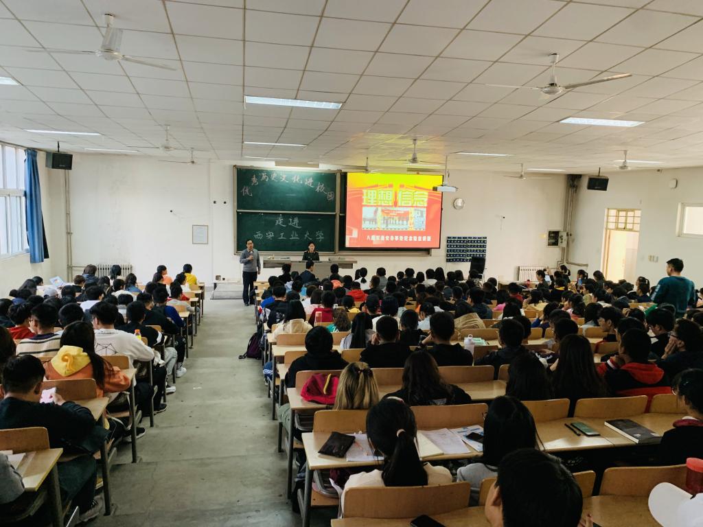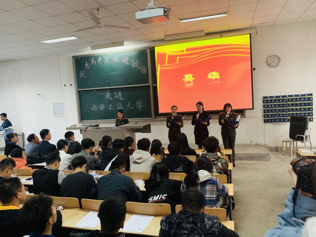 1029日,成人游戏 邀请八路军西安办事处纪念馆《理想•信念》宣讲团,走进我校“思想道德修养与法律基础”课堂,为300余名师生讲授了一堂铭记革命传统、弘扬红色精神的思想政治理论课。