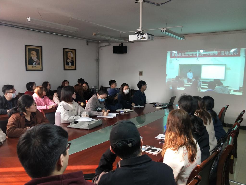 全体教师、形式与政策课教师、研究生,除承担课程任务的师生在上课时段正常上课外,全体按时参加观摩活动。并设置学院六楼大会议室为主会场,用于整体观摩;在各教研部为分会场,方便教师观摩本门课程展示情况。各会场按照陕西高校思政课教师“大练兵”直播网站《网络直播观摩指南》要求,提前调试好分会场电脑设备为观摩做好技术准备。