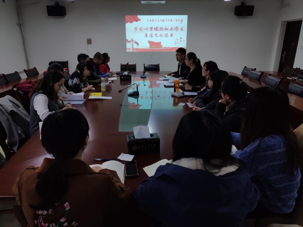 学生第一党支部开展“以案促改”及大学生廉洁专题学习教育活动,党支部书记杨婧和全体学生党员参加。