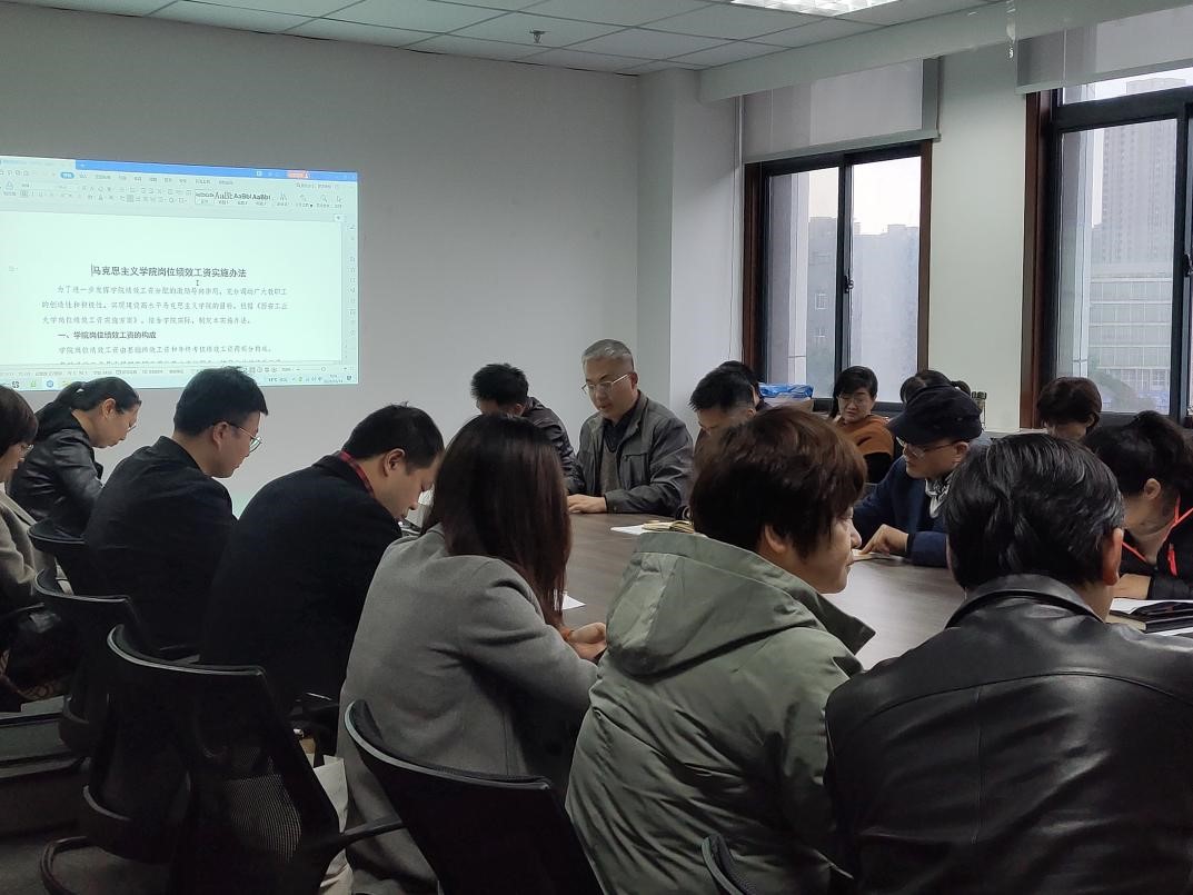 院长李晓彤对《成人游戏 专职思政教师岗位津贴发放办法》(简称《办法》)进行了说明。李院长首先介绍了《办法》制定的相关政策。根据上级有关政策文件中“各地要因地制宜设置思政课教师岗位津贴”要求和中共陕西省委教育工委、陕西省教育厅《关于做好普通高等学校专职思想政治理论课教师岗位津贴设置工作的通知》精神,经过学院党政联席会讨论,形成该《办法》。李院长围绕发放对象、发放原则、发放标准、方法条件几方面进行解读,体现了多劳多得、优劳优酬原则,按照《成人游戏 岗位绩效工资实施办法》、《成人游戏 年终考核绩效工资实施办法》规定的相关条款执行。