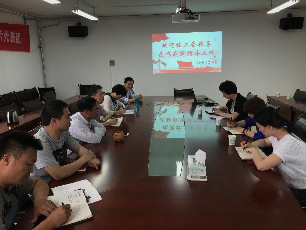 2018年6月1日,校工会主席赵琼和副主席周晔、工会干事王小珏一行来学院走访调研,院长田亮、院工会委员、工会小组长参加了座谈会。