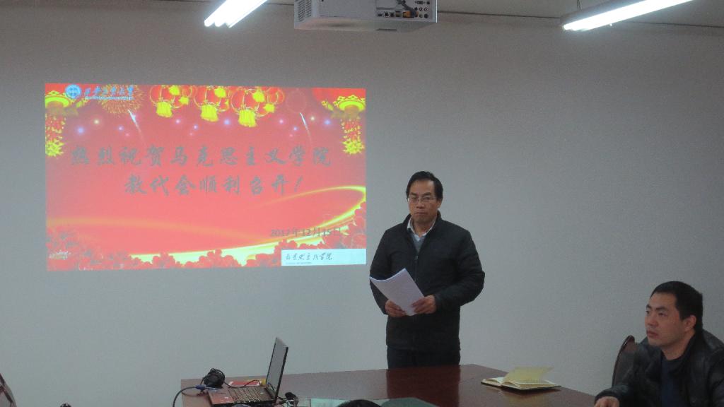院党委书记李晓彤发表讲话。他用“凝心聚力,共谋发展”8个字高度概括了学院一年来的工作,对学院今后的发展提出了3点要求:1)树立广泛凝聚共识,共谋发展的意识,形成了良好发展态势;2)面对当前高校争夺人才的严峻形势,努力推进依法依规办学;3)发挥基层工会、教代会作用,努力营造和谐发展的氛围。