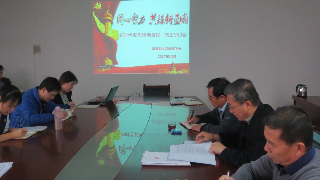 工会在行政楼623会议室举行特色活动,以“同心聚力,共谋新蓝图,新时代 新思想 新征程”为主题开展十九大精神研讨交流。学院全体教工参加此次活动。活动由工会主席李明芳主持。