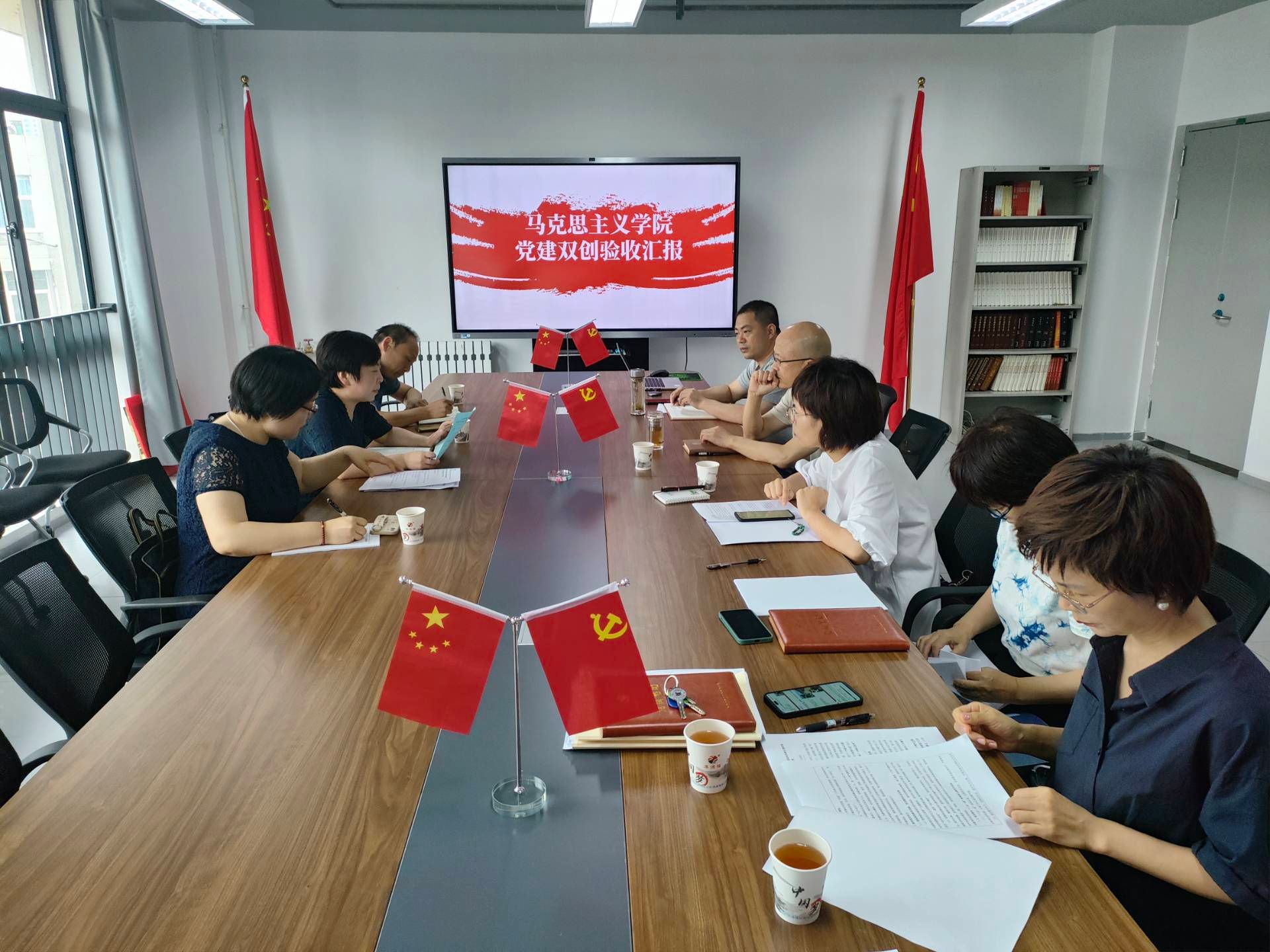 会议依次听取了杨灏代表学院党委、李金玉代表毛泽东思想和中国特色社会主义理论体系概论教研部党支部、张敏代表习近平新时代中国特色社会主义思想概论教研部党支部、王立军代表中国近现代史纲要教研部党支部所做的创建工作情况汇报。