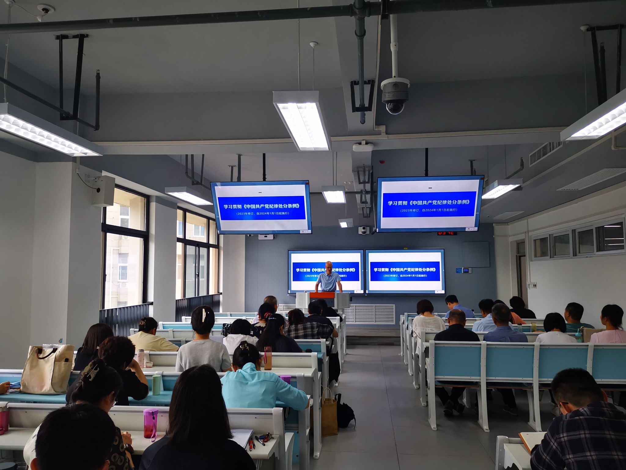 7月5日,学院召开教工党员大会,开展党纪学习教育专题学习。会议由党委书记杨灏主持。
