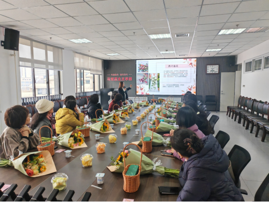 为庆祝第 115 个“三八”国际劳动妇女节,3月5日上午,学院工会举办“花漾时光·指尖浪漫” 插花艺术体验活动。近20名女教师齐聚一堂,在花香四溢中体验花艺魅力,共庆属于自己的节日。