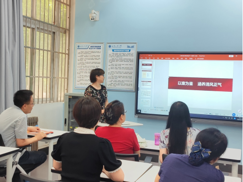 党委副书记李明芳以主题《以案为鉴 涵养清风正气》为毛泽东思想和中国特色社会主义理论体系概论教研部党支部全体党员讲授学习教育专题党课。
