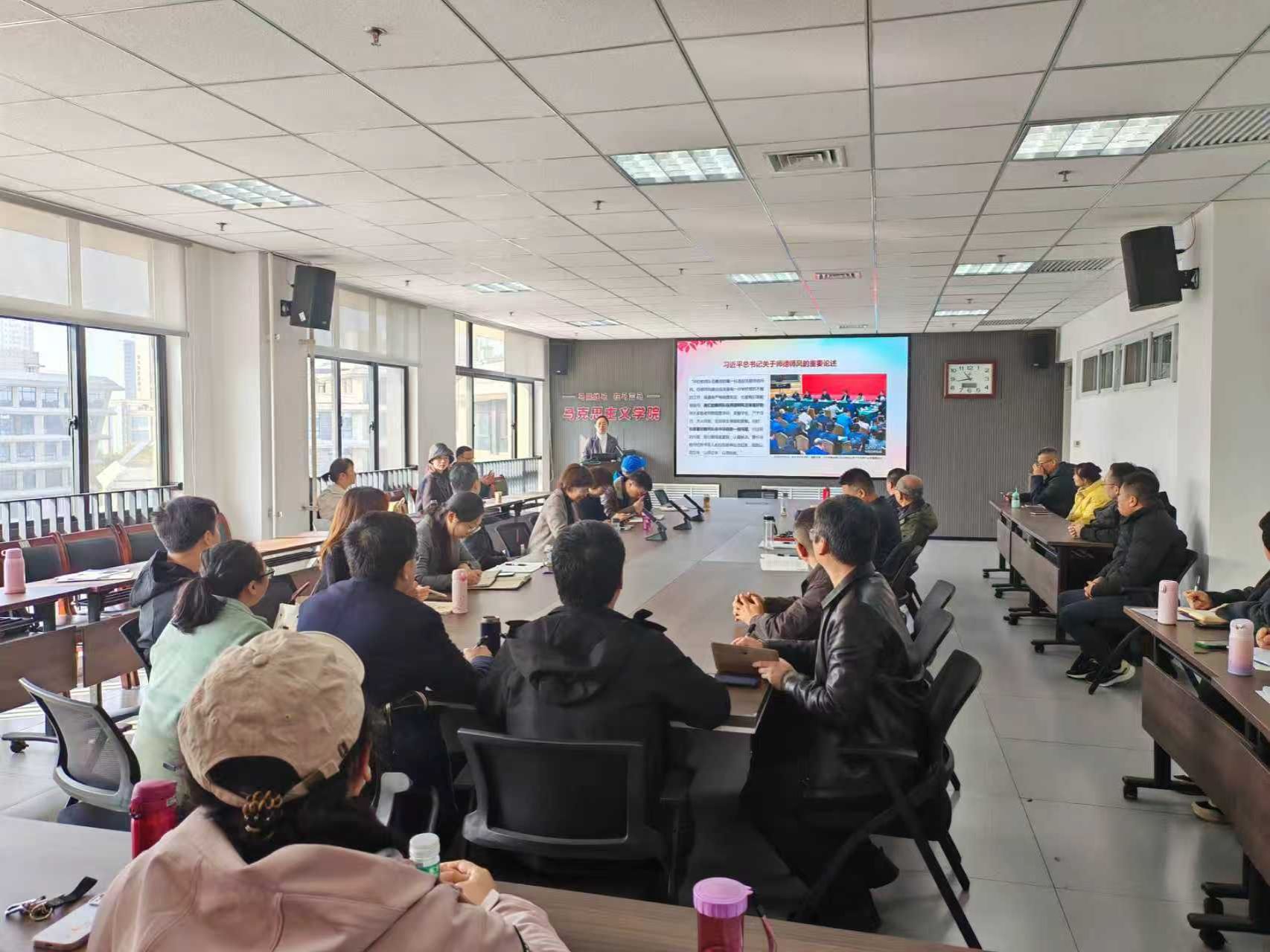 举办师德专题报告会。校级师德标兵梁花副教授作专题报告,报告会由院党委书记杨灏主持。