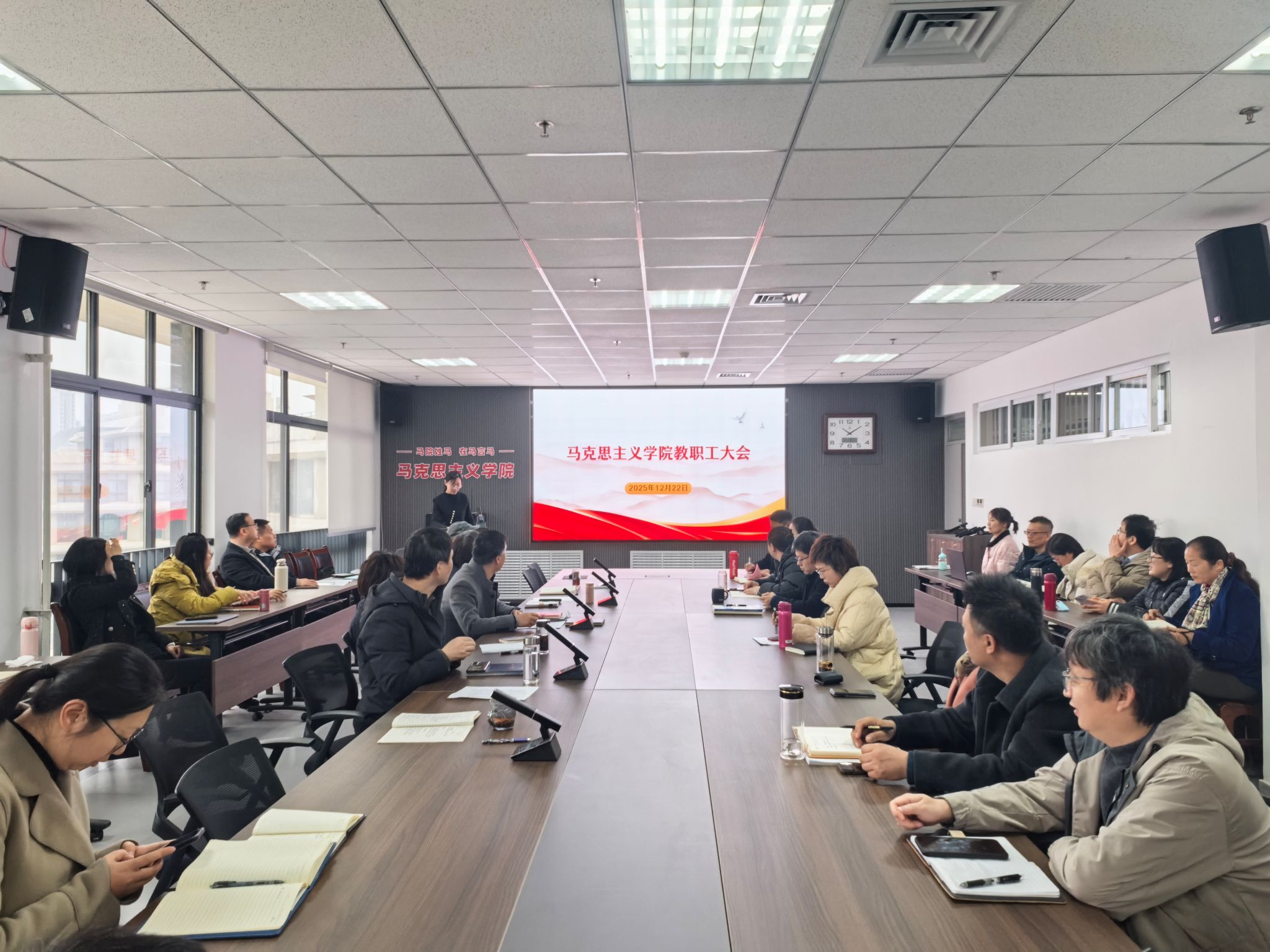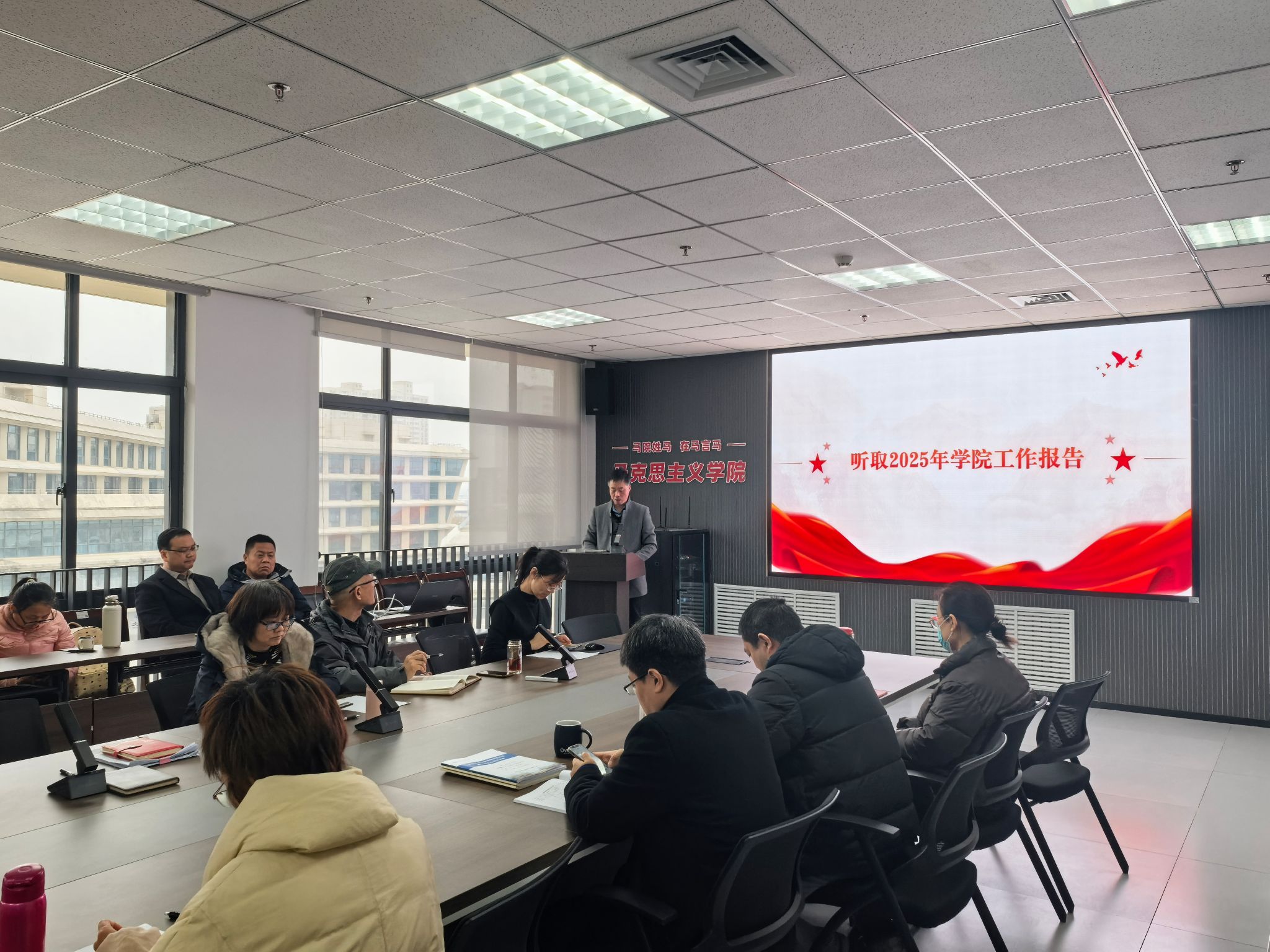院长梁华平代表学院领导班子作2025年工作报告。报告全面回顾了2025年学院在党的建设、思政课教学、科学研究、人才培养、社会服务与交流合作、师资队伍建设等方面取得的成效,客观分析了学院发展面临的挑战,并明确提出了下一阶段的工作思路。报告强调,要以学校全面深化改革、制定学院“十五五”规划为契机,强化师资队伍建设,深化教育教学改革,培育高水平标志性成果。