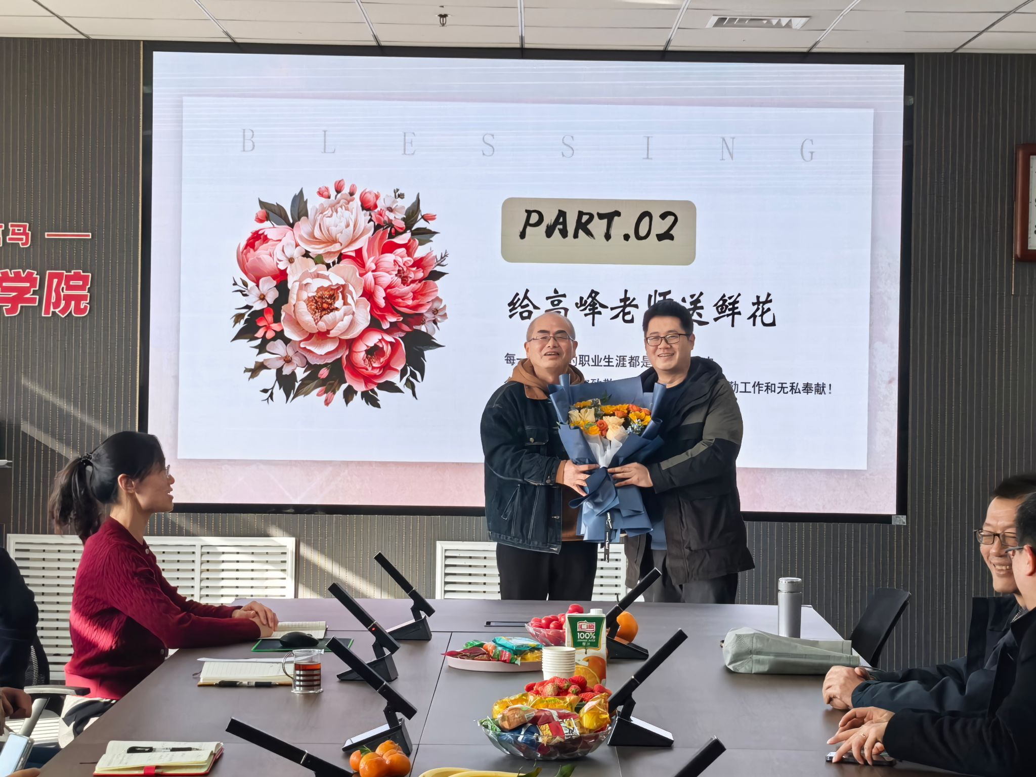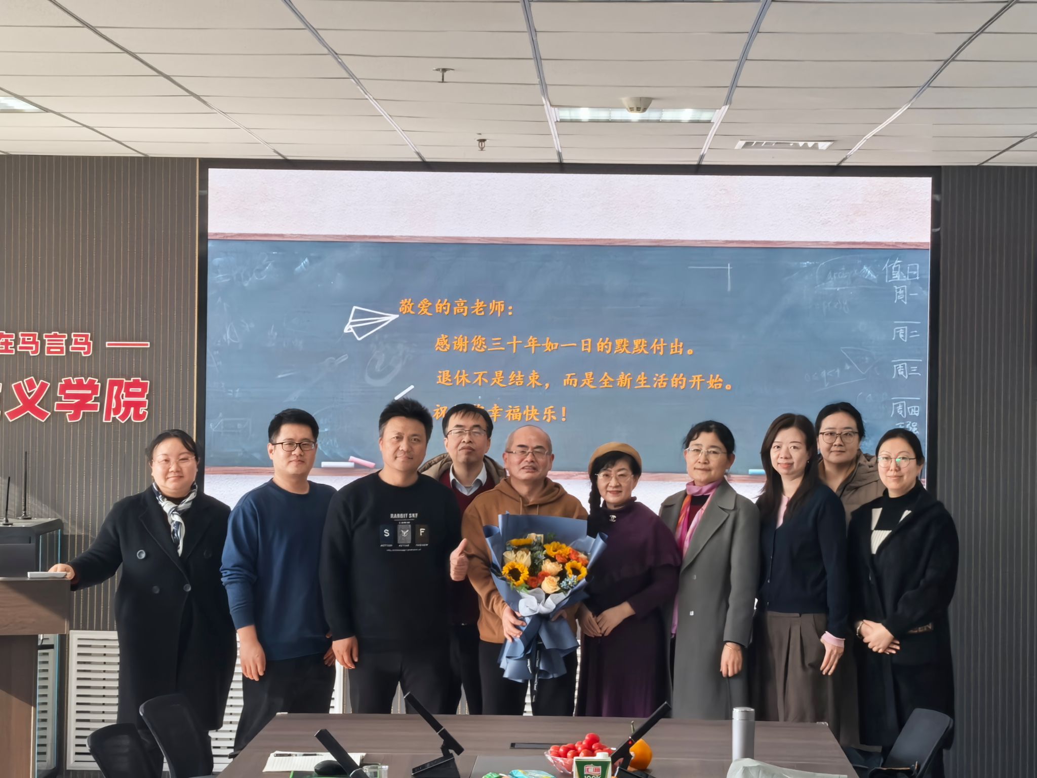 随后,学院领导和教师代表为高老师敬献鲜花与纪念品,送上最诚挚的问候与祝福。