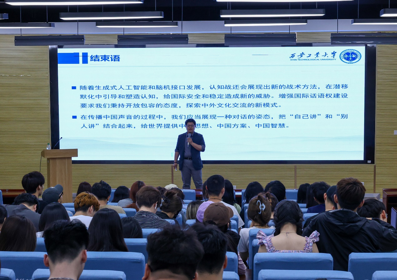 马克思主义基本原理教研部主任周意岷副教授做了题为《新时代大国外交视野下的对外传播》的主题讲座,讲座由艺术与设计学院播音与主持艺术专业辅导员刘思瑞主持,播音与主持艺术专业2022级、2023级全体同学参与。