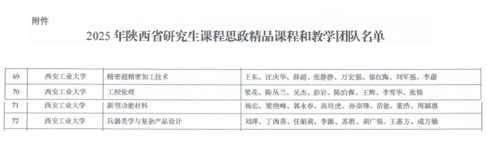 近日,陕西省教育厅公布了2025年陕西省研究生课程思政精品课程认定结果,我校4门课程榜上有名,成人游戏