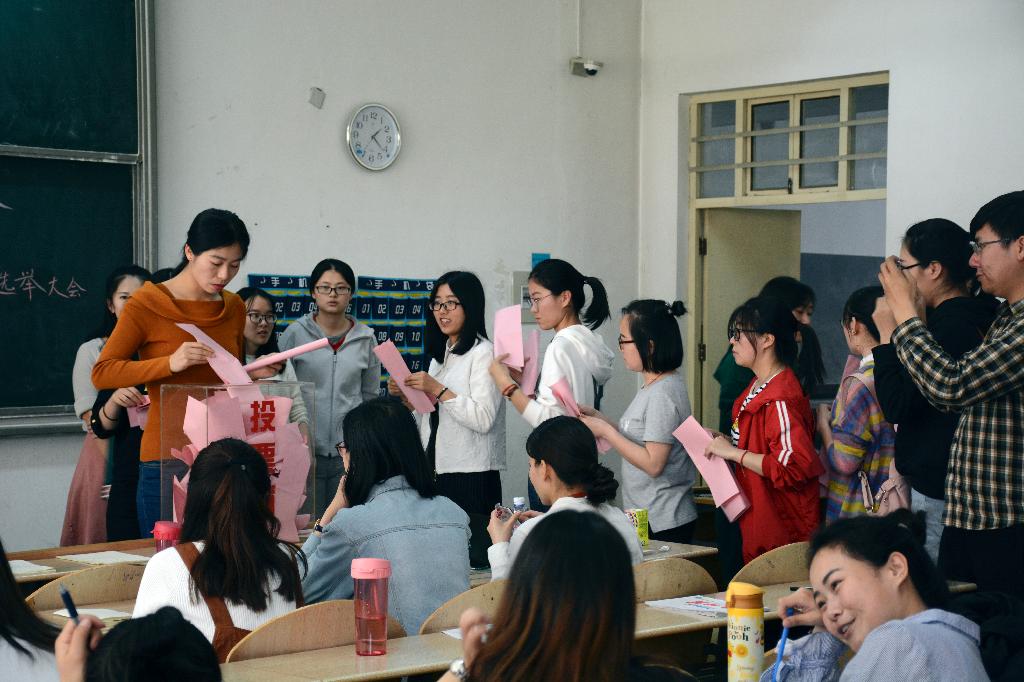 随后,大会以无记名投票方式进行了代表选举,同学们严格按照投票流程与要求积极参与到代表的选举工作中。最后,由监票人宣读了选举结果,刘思瑞、刘鑫、张丽芳、张鑫、姚坤昊等五位同学当选学代会代表,刘思瑞、刘鑫、张丽芳、张鑫、陈泊蓉、姚坤昊等六位同志当选团代会代表。全体与会同学以热烈的掌声向当选代表表示祝贺。