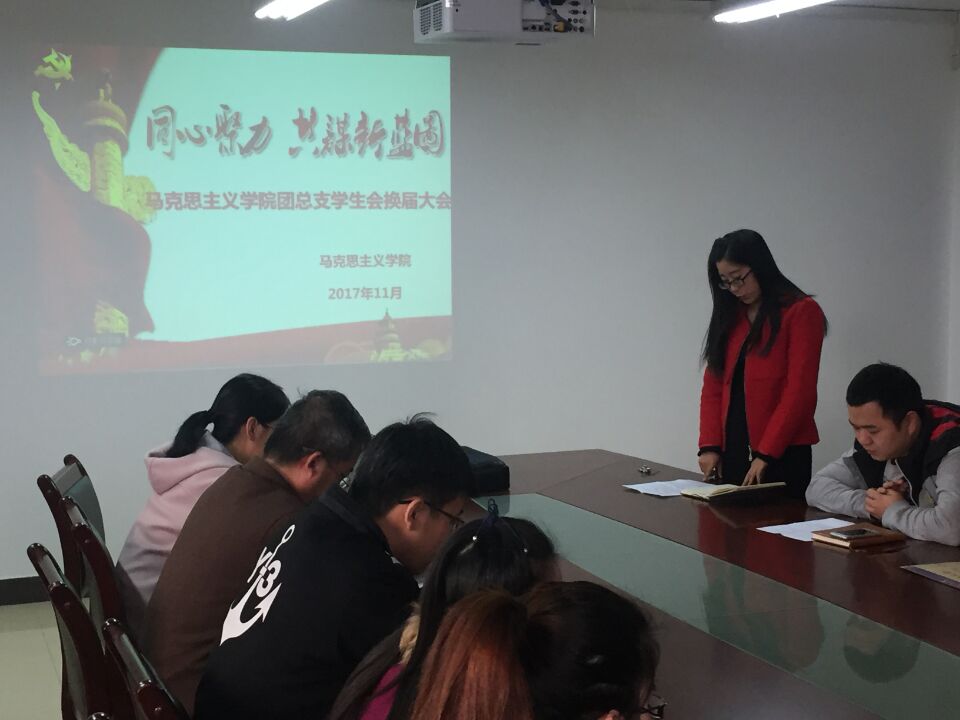 团总支研究生会在2016-2017学年的工作开展情况,王晓阳认为学院的团学工作在院领导的正确指导和各部门的团结之下取得了一些成绩,但也存在很多不足之处,希望新一届团学干部要吸取教训、借鉴经验,使马院的团学工作再创佳绩。