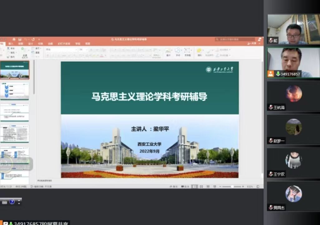 9月16日,成人游戏 副院长梁华平通过腾讯会议形式面向西安文理学院成人游戏 大三、大四学生进行了考研辅导。辅导从学科现状(我校招生学科专业分布)、如何备考(专业课考试科目及重难点)及注意事项几个方面进行了讲解,并与部分学生进行了线上互动交流。通过本次宣讲,使该校学生进一步了解我校马克思主义理论学科的特色优势、招生情况、导师队伍及复习备考注意事项,有利于增强学生报考的意愿。