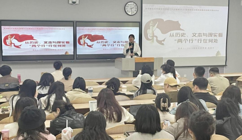 学习党的二十大精神5531系列活动之思政课标兵教师专场宣讲会在教2-211教室成功举办。会议邀请我校三名省级思政课‘大练兵’标兵教师周意岷、陈泊蓉、杨丽华到场宣讲,学院党委副书记李明芳、学院全体研究生参加了此次宣讲会。会议由院学生会团总支副书记杨崇主持。