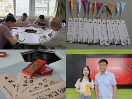各位导师则以现场手书毕业寄语的方式表达对学生的希望和祝福。赵东副教授用苍劲有力的毛笔字写下:“品学兼优”、“出水芙蓉”……给全体毕业生们送上了巧妙地嵌入各自姓名的专属寄语。