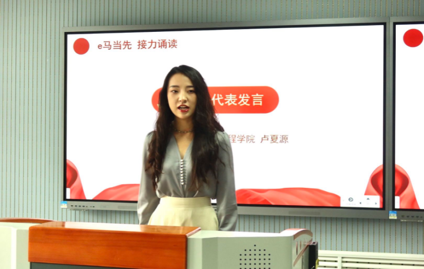 一等奖获得者机电工程学院卢夏源同学上台发言。她分享了自己在准备碑文诵读过程中的心路历程,表示通过此次活动,不仅加深了对革命历史的理解,更激发了内心深处的爱国情怀,呼吁同学们要珍惜当下,不忘初心,牢记使命,将革命精神内化于心、外化于行。