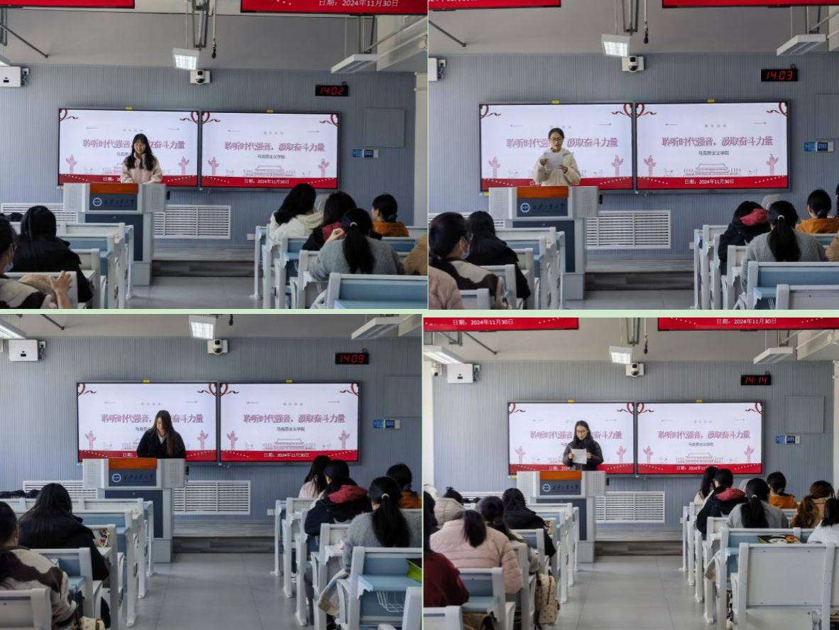 于11月29日在教7-416举办了“聆听时代强音,汲取奋斗力量”主题教育活动,2023级、2024级全体研究生参与活动。