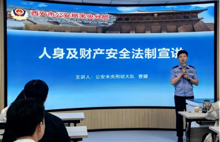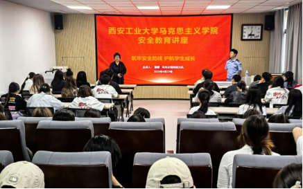 为强化校园安全教育,提升学生防范意识,4 月 23 日下午6点,马克思主义学院在教 7-503 举办警校联合安全宣讲活动,邀请西安市公安局未央分局民警曹艨,为同学们带来一场主题为 “法治护航”的人身及财产安全法制宣讲。2022、2023级、2024级全体研究生参加活动。