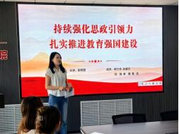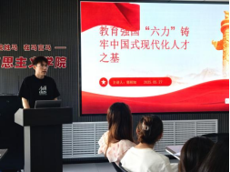 丁宇同学聚焦“以党的创新理论推动思政课内涵式发展”,提出了情感共鸣与空间变动的教学思路;王展航同学通过“伟大改革开放精神的三重意蕴”分析了当代中国人民的精神标识;郭相如同学以“教育强国‘六力’筑牢中国式现代化人才之基”为题,提出教育现代化的系统思考。