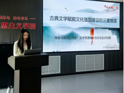 王芊芊同学以“古典文学赋能文化强国建设的三重维度”为题,剖析了中华优秀传统文化在新时代文化创新中的重要价值;彭莉君同学探讨了强化思政引领力在推动教育强国建设中的实践路径;温娇同学则从弘扬劳模精神、劳动精神、工匠精神的角度,论述了劳动创造在中国式现代化进程中的时代价值。