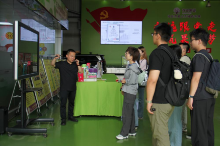 随后,实践团走进陕西千裕酒业有限公司智能化生产车间,见证猕猴桃从“鲜果”到“美酒”的深加工转型。在企业工作人员的讲解下,实践团成员参观了果酒生产车间,了解了从猕猴桃原料到成品果酒的整个生产过程。先进的酿造设备、严格的品质管控,让成员们对果酒生产有了全新的认识,以及农产品深加工在乡村振兴中的巨大潜力。
