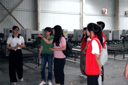 在周至猕猴桃产业融合发展示范园园区技术人员的讲解下,实践团成员听取了示范园以“数字赋能+产业振兴”为主题,以“搭建一个农业科研技术与产销综合服务平台,塑造高新技术、采后加工两个服务链条,建设技术研究、服务推广、智慧仓储、综合加工、品牌营销五大融合中心”为主线,打造“国际一流、国内领先”的现代化猕猴桃产业示范园区的建设情况。随后,实践团成员参观了高标准智慧冷库、猕猴桃研发营销中心、自动化分选包装车间等现代化发展区。