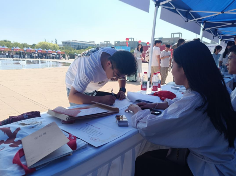 ”标识、温馨的欢迎横幅与手册、整齐摆放的新生物资,让刚踏入校园的新生及家长感受到浓浓的归属感。党委副书记李明芳、研究生秘书张诗雨老师等率先来到迎新现场,详细查看迎新流程,与工作人员、学生骨干亲切交流,叮嘱大家要以耐心、细心、热心的态度做好服务,确保每一位新生都能“零障碍”办理入学手续。“这是学院为大家准备的《新生入学指南》,里面有课程安排和社团介绍,有疑问随时找我们!”迎新现场,学生骨干们化身“暖心使者”,穿梭在校园各个角落:有的协助新生核验身份、领取物资,有的为家长和新生讲解校园布局与生活注意事项,有的主动帮忙搬运行李,用热情的笑容和周到的服务,缓解了新生的陌生感与紧张感。期间,学院领导与新生及家长面对面交流,仔细询问新生的家乡、兴趣及对大学生活的期待,鼓励新生要以马克思主义理论学习为起点,树立远大理想,在大学期间夯实专业基础、提升综合素养,努力成长为担当民族复兴大任的时代新人。