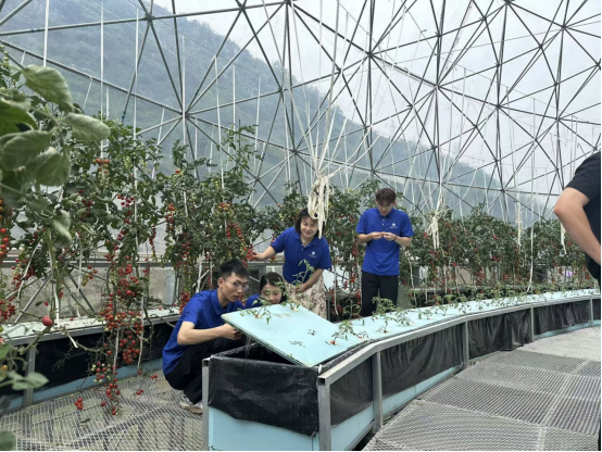 之后,队员们参与了大棚采摘等体验活动,在躬身劳作中近距离观察现代农业技术的应用场景,切身体会传统农业向智慧农业转型的深刻变革。“亲手摘下无土栽培的圣女果,才真正理解‘新质生产力’不是抽象概念,而是能让土地焕发新生的实践力量。”实践队队员夏敏在实践日志中感慨道。这种参与式调研正是实践队秉持着“既用理论视角观察实践,又以实践反哺理论思考。”这一理念的真实写照。